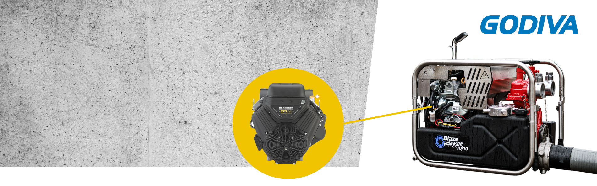 Alongside the Blaze Warrior, Godiva also deployed Vanguard engines in the PowerFlow 8/5 Single and Twin Discharge pumps, powered by the Vanguard 18 HP horizontal shaft engine with integrated fuel tank. As with the 40 HP unit, the engines’ compact architecture and dependable performance supported Godiva’s objective of creating portable pumps that are robust, easy to handle and simple to maintain.